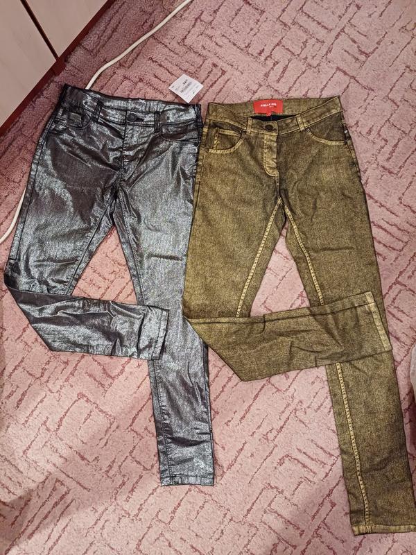 Брюки для девочки-подростка серебристые и золотые