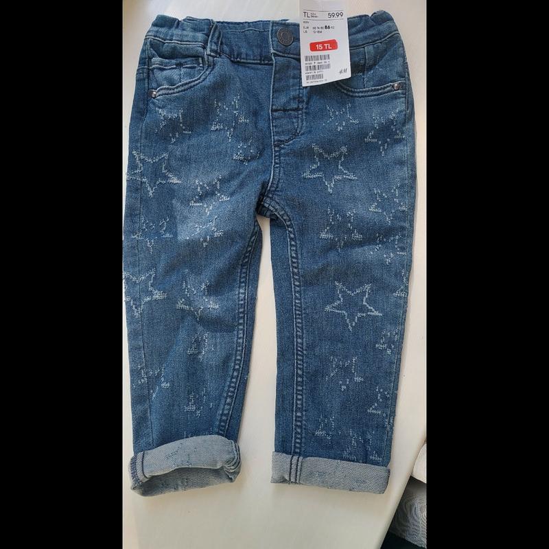 джинсы на девочку голубые, ткань мягкая, комфортные. Пояс на кнопке, также есть дополнительная резинка изнутри для регулировки ширины. Рост 86см, возраст 12-18 месяцев