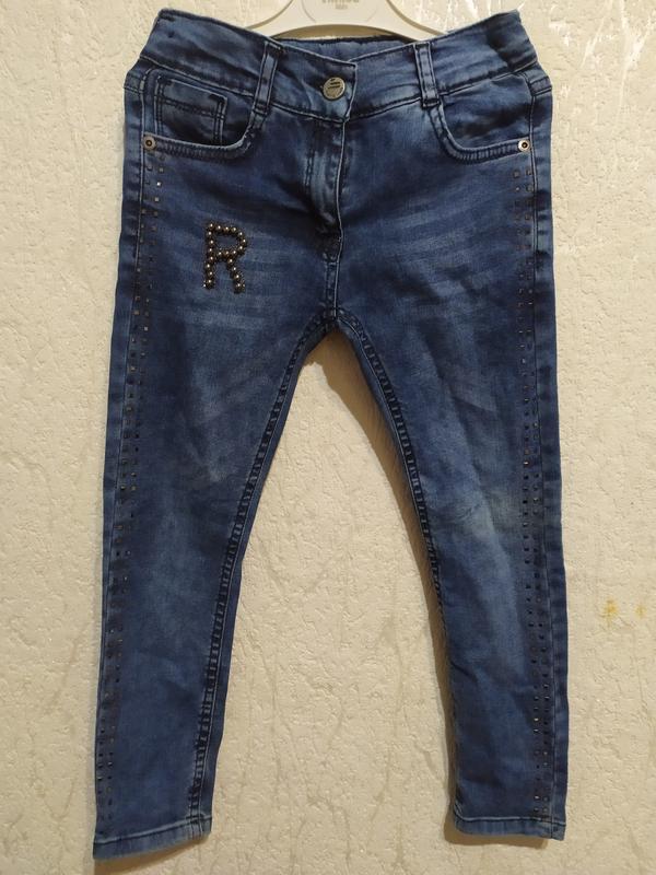 Джинсы для девочки на рост - 122, возраст - 7-8 лет. Тягнуться. Украшены стразами. В поясе есть резинка для регулировки объема талии. Длина - 68 см, ПОТ - 29 см. Из дополнительных вопросов, пишите.