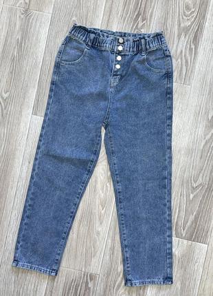 Джинсы Baggy МОМ Талия на резинке Карманы спереди и сзади Состояние отличнейшее 🏷️Shein 10 лет/140 Длина 86. Шаг 53. ПОТ 31
