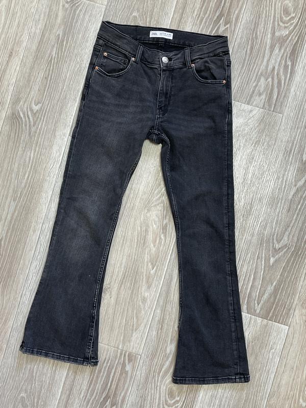 Джинсы темно серого цвета Внизу немного расклешенные В талии есть утяжка Состояние отличное 🏷️Zara 11-12 лет/152 Длина 86. Шаг 66. ПОТ 33