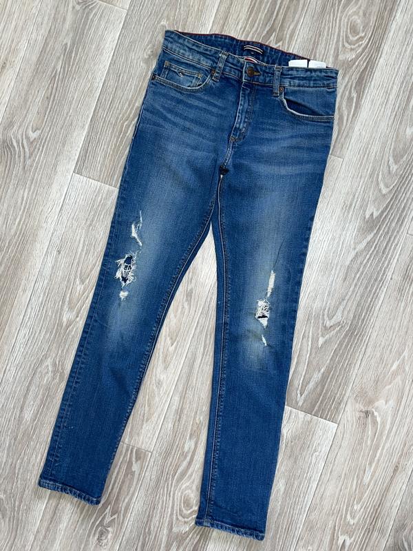 Джинсы Спереди и сзади карманы Потертости с подкладкой Есть утяжка в талии Состояние отличное 🏷️Tommy Hilfiger 164 р Длина 95. Шаг 73. ПОТ 35. Попа 44. ПОБ 21. Внизу 14