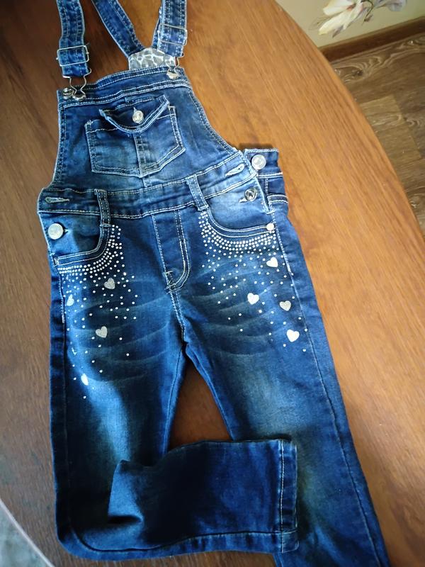 Комбинезончик в идеальном состоянии на размер98/104 одевался два раза. Длина брюк от пояса 69см., Полуобъем 27см. Хорошо тянется. Загублена одна заклепка.