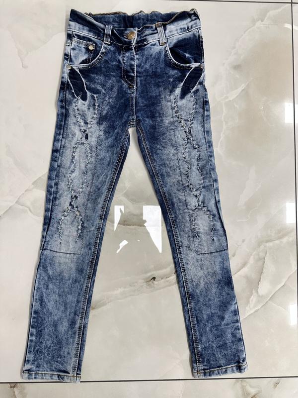 Красивые джинсики в идеальном состоянии. Потертости внутри прошиты накладкой, ничего не светитится и не продувает. Размер 10. Замеры: длина 76см, шаг 54см, посадка впереди 21см, сзади 24,5см, пот 27см, поб 32см, ширина штанины внизу 12см.
