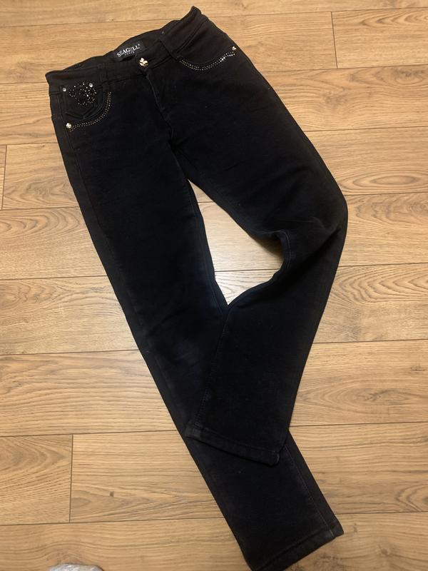 Джинсы утеплённые флисом состояние хорошая пол обхват талии 32 см тянется до 37 боковому шву длина 89 см шаговый шов 68 см