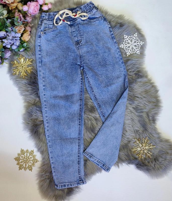 Стильні джинси Мом, тканина плотний джинс джинс тягнеться шнурочок робочий в поясі резинка є кишеньки, ЯКІСТЬ ВІДМІННА! заміри-довжина\крок\стегна\пояс 23-87\60\43\29 24-91\64\44\30 26-94\67\47\30 Розміри 23р(140-146) 24р(146-152) 26р(158-164)