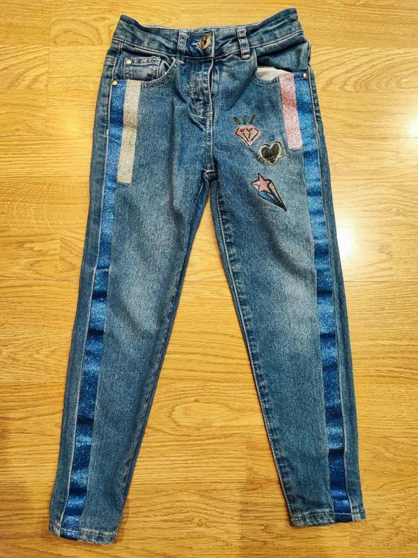 Классные, яркие джинсы на девочку 5-6 лет, рост 116см. Длина 63 см Крок 45 см Пояс 24см