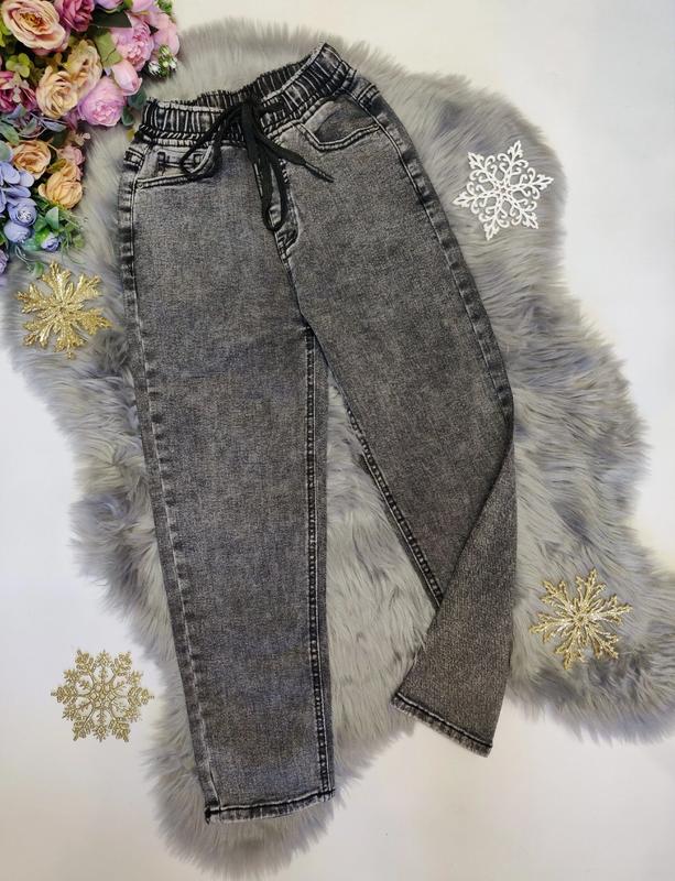 ток Стильные джинсы Мом, тканина плотний джинс джинс тягнеться шнурочек рабочий в поясе резинка есть кармашки, КАЧЕСТВО ОТМЕННА! замеры-длина\шап\стегнущая\пояс 22-80\54\41\25 23-84\59ї\42\25 Размеры 22р(134-140)-1 шт 23р(140-146)-1 шт