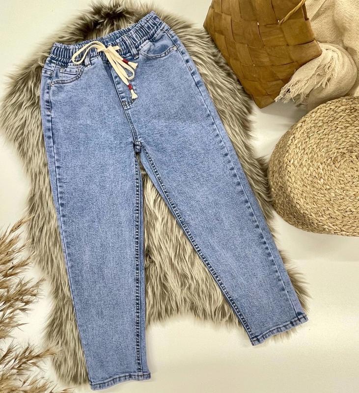 арт 4142 Джинси МОМ, тканина джинс Без утеплителя в поясе резиночка, есть кармашки. Качество бомба, хорошо тянутся, пояс регулируется шнурочком Размер (рост) длины/шак/пот/поб похибка+-2см 22(134-140)/81/55/26/39-4шт 23(140-146)/86/59/27/40-2шт 24(146-152)92/63/28/41-2шт 25(152-158)94/65/29/42-2шт 26(158-164)/96/66/30/43-5шт 27(164-170)/98/68/30/44-4шт