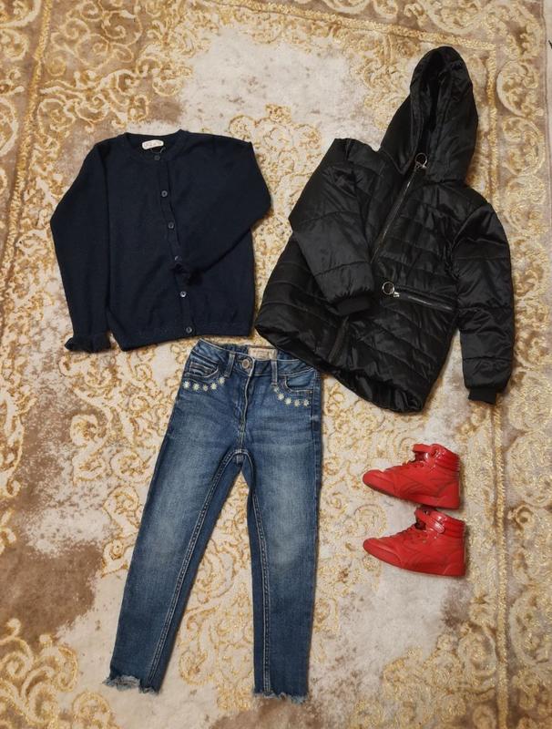 Вещи на девочку 3 года, може бути довше. Куртка длина 40/44, рукав 35. Джинсы длина 53, кофточка длинна 40. Хайтопы Рибок оригинал.Размер 25 стелька 16. Цена 370. Цена указана за джинсы