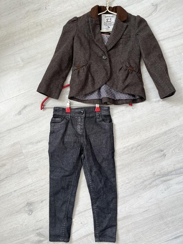 Фирменные джинсы Tu на 4 года рост 104 см,стрейчевые имеют втяжку Замеры: длина 56 см, крок 39 см,пояс 25 см цена 250 грн,пиджак tu на 4 года рост 104 см Замеры: длина по спинке 40 см,рукав без плеча 38 см, с плечом 45 смширина в груди 34 см 200грн.Речи в хорошем состоянии@***********