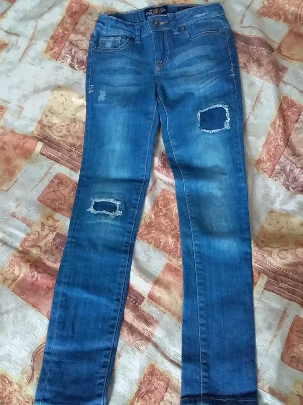 сині, на 8років, 99%котон, оздоблені латками, пояс 29, підтягується, бедра 33, довжина80, в ходу60. в дуже хорошому стані.