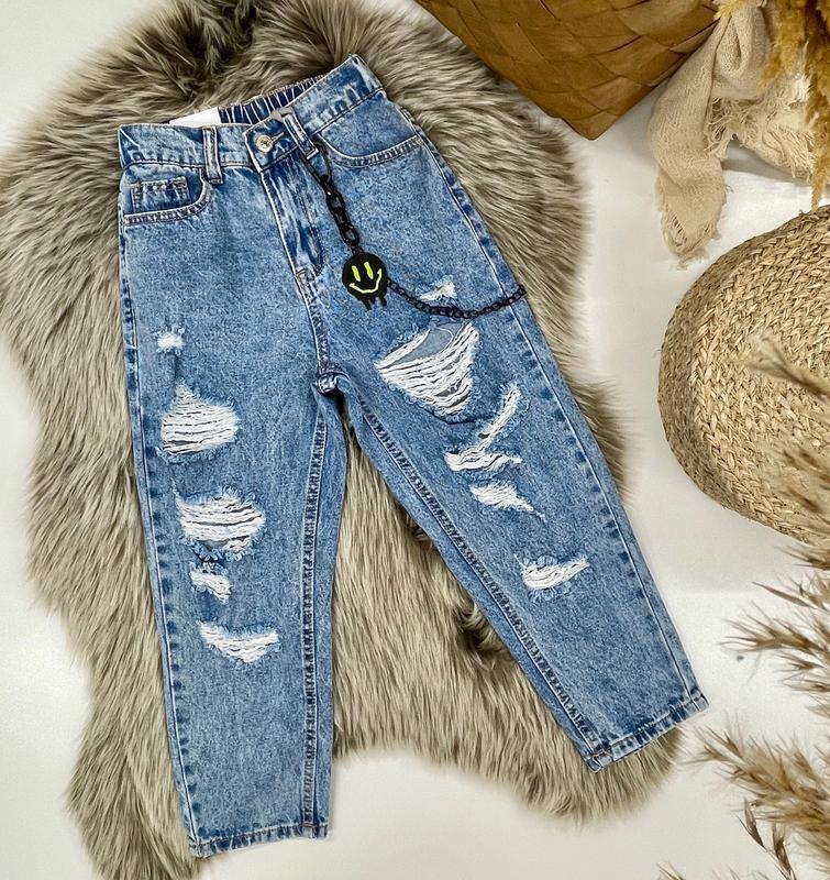 Таня арт 4281 Джинси МОМИ тканина котон 100% В поясе сзади под резинку есть карманы. высокая посадка в комплекте цепочка украшение ГАРНАЯ КАЧЕСТВО! рост/возраст/длина/шак/пот/поб похибка +-2см 122-128/8/71/47/25/40-1шт 146-152/12/86/60/29/44-2шт 170-176/16/98/71/31/48-2шт