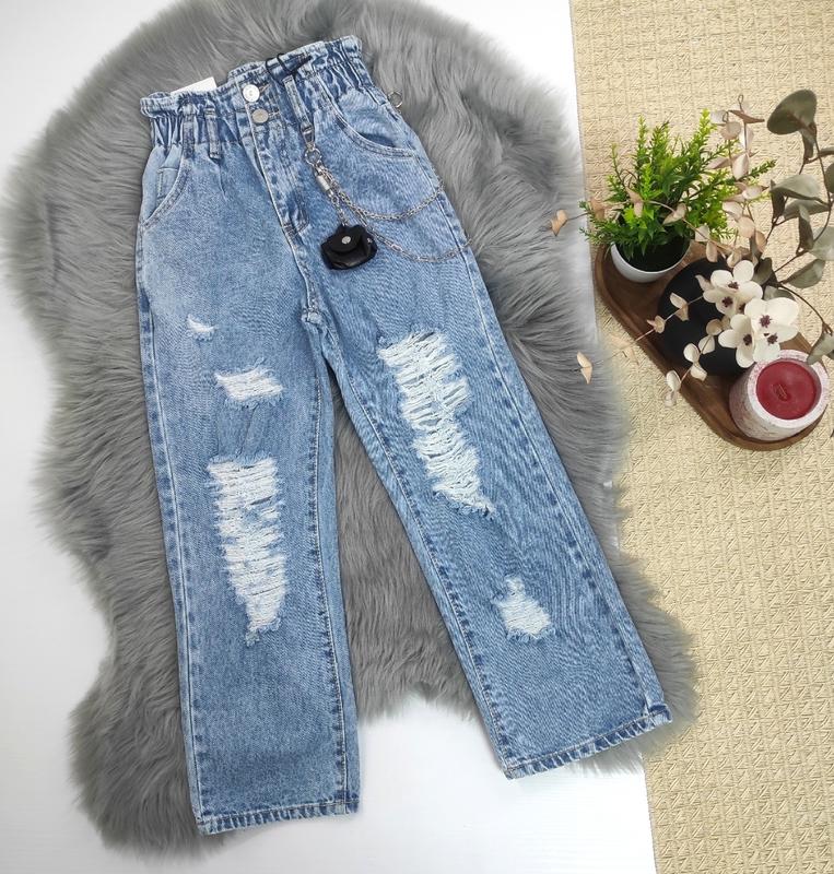 Джинсы ПАЛАЦО для модницы тканина котон 100% есть карманы,пояс на резинке украшение цепочки в комплекте замеры: длина/шак/пояс 122-128(8)-75/51/24 146-152(12)-88/61/27 170-176(16)-100/69/31 +-2см