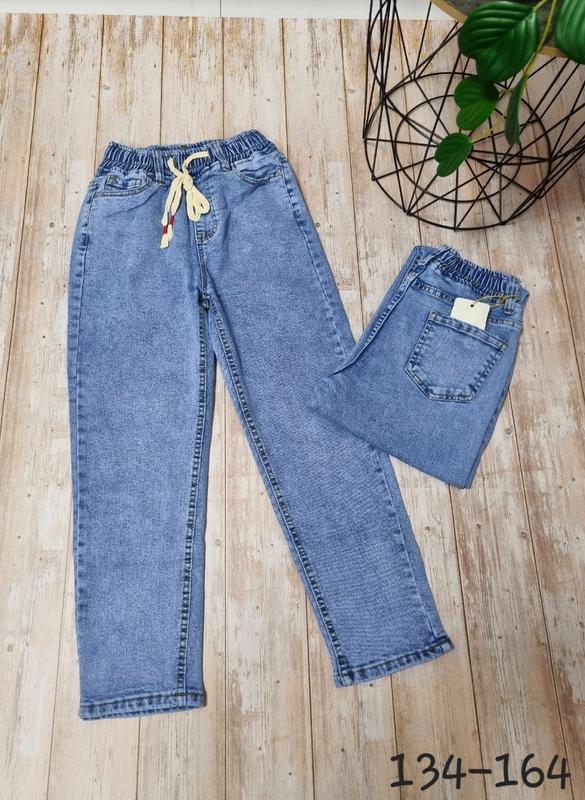 3426 Стильные джинсы Мом, ткань плотный джинс в поясе резинка есть кармашки, КАЧЕСТВО ОТМЕННА! 22(134-140)(8 шт)-длина 80,шак 54, поб 41,пояс 25 23(140-146)(4 шт)-длина 84,шаг 59, поб 42,пояс 25 24(146-152)(7 шт)-длина 89, крок 64, поб 44,пояс 26 25(152-158)(6 шт)-длина 93,шарк 66, поб 45,пояс 27 26(158-164)(6 шт)-длина 94,шаг 67, поб 46,пояс 28 27(164-170)(7 шт)-длина 98,шак 69, поб 47,пояс 30 +-2 см