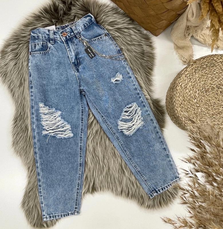 арт 4280 Джинси МОМИ тканина котон 100% В поясе сзади под резинку есть карманы. высокая посадка в комплекте цепочка украшение рост/возраст/длина/шак/пот/поб похибка +-2см 158-164/14/93/67/31/48-1шт 170-176/16/103/74/33/50-2шт