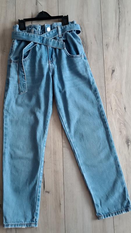 Клевые джинсы, высокая посадка на р.9 лет. Длина 83 см.между ногами шов 58 см.пояс резинка