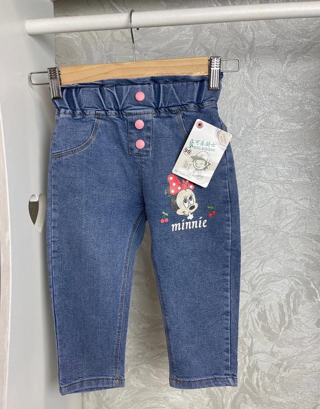 Стильные джинсы для девочки👍🏻 Пояс на резинке,на попе есть карманы. Очень круто смотрятся на детках 😍 Хорошее качество и практичный дизайн 💥👍🏻 90 - длина - 49 см, крок- 29 см, бедра 31 см(2 шт ) 100 - длина - 56 см, крок- 35 см, бедра 33 см(2 шт ) 120 - длина - 67 см, крок- 43 см, бедра 35 см(1 шт) 130 - длина - 71 см, крок- 46 см, бежевое 36 см(4 шт)