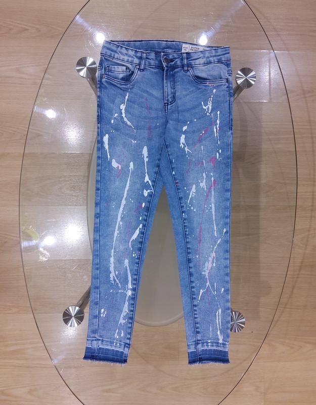 Джинсы на девочку 9-10 лет, скинни, стрейчевые. Стан идеален. Талия регулируется. Рост 134-140 см. Пересылаю после оплаты на карту.