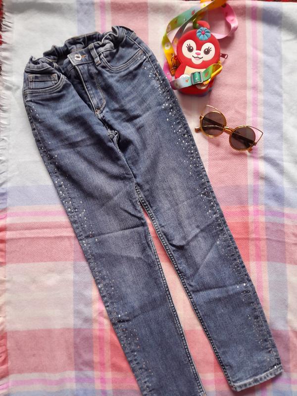 крутые джинсы с камушками по бокам. красиво тянутся. чуточку потеряли цвет, но без дефектов. замеры задам
