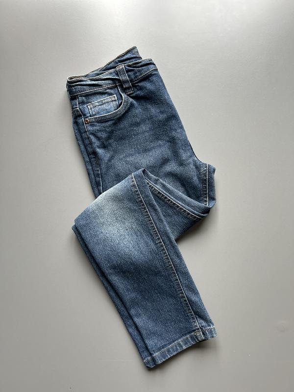 Хорошие плотные джинсы на девочку 10-11 лет ростом 142-152см. Состав ткани на этикетке затерся, поэтому неколе. Длина - 86см Длина внутреннего шва - 63см Ширина в талии - 34см Ширина в попе - 42см Ширина штанини внизу - 13см Посадка - 23/31см Нюанс на останньому фото. Минимальный заказ 100грн.