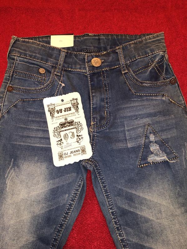 Джинсы на девочку Замеры: длина 78 см; обхват пояса 66 см; полуобхват бедер 37 см; весовая (разом с поясом) 53 см; Тканина: 90% бавовна; 5% полиэстер; 5% еластан Цвет: синие