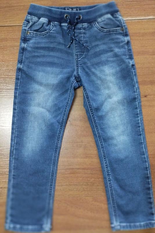 Джинси Next стрейчеві з регульованою талією, на трикотажній гумці зі шнурком, колір індиго з потертостями, склад: 59% бавовна, 27% віскоза, 13% поліестер, 1% еластан, 4 кишеньки: 2 спереду та 2 ззаду На 6 років (зріст приблизно 116 см), заміри: загальна довжина 63 см, крок 45 см, у гумці 27 см Покупилися на сайті Next, В дуже гарному стані!