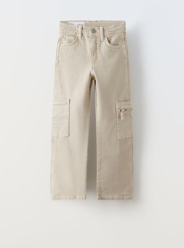 Джинси фірми Zara з регульованим внутрішнім поясом та застібкою на ґудзики спереду. Склад 98% бавовна, 1% еластан. В наявності бежеві 7 років -122 зріст Блакитні 7 років -122 зріст