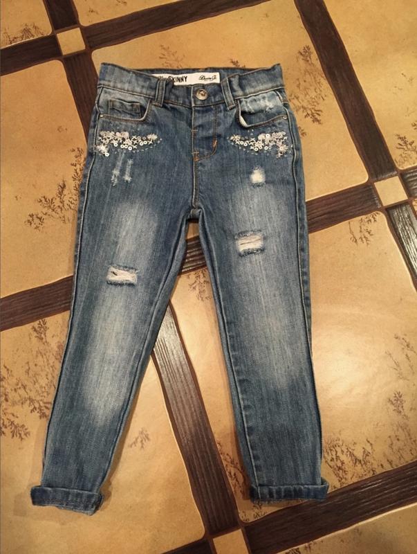 Очень классные джинсы на девочку 3-4 лет. В хорошем состоянии на поясе есть утяжка. Заміри на фото.