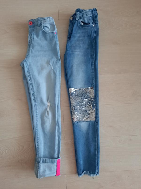Продам джинсы в идеальном состоянии, фирма Little kids,размер 134., есть утяжка по 200 грн. Замеры : фото 2-3 талия 34см [в растянутом состоянии есть утяжка -резинка с середины, длина по внешнему шву 81см, длина по внутреннему шву 60 см. Фото 4-5:ширина по талии 33см, и есть утяжка -резинка с середины длина по внешнему шву 79см + 8 см можно отогнуть, длина по внешнему шву 54см +8 см подворот. Цена по запуску.