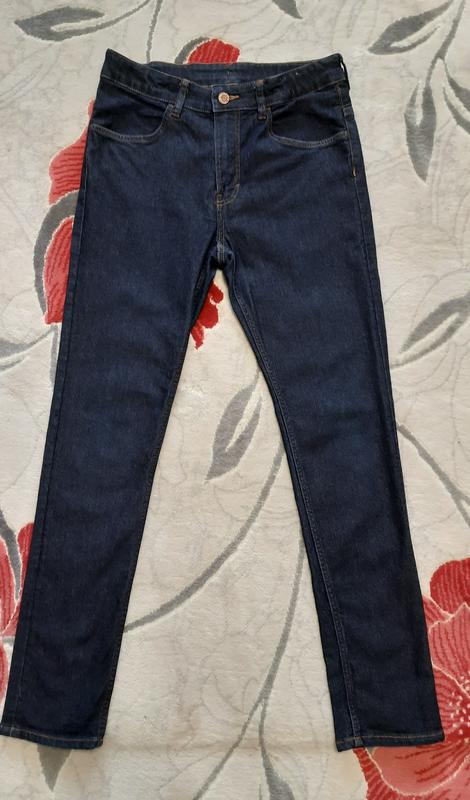 456 Стрейчевые джинсы. Состояние новых. Темно-синего цвета. Со скрытой резинкой в поясе. На 12-13 лет. Рост до 160 см. Ширина поясу 35 см Ширина бедер 45 см Посадка : перед 24 см, зад 31 см Ширина штанины в бедрах 23 см, снизу 14 см Длина по внутреннему шву 68 см, по внешнему 95 см.