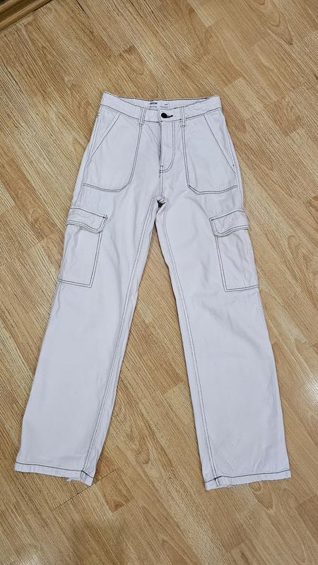 джинсы карго Bershka, рр 32,состояние отличное, сзади немного стёрли задники( незначительно) в носке не заметно (последнее фото),ц.500гр