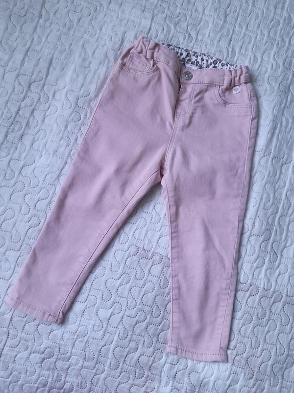 Джинси H&M 92см, будуть довше. Нежно розового цвета, ткань тянется, пояс регулируется утяжкой. Стан идеален, одели 1 раз.