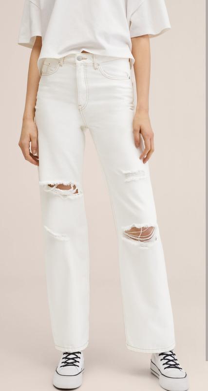 Широкие джинсы с декоративными рваными краями Цвет белый, все бирки на месте Новые джинсы бренда МANGO Подростковая коллекция, размер ХS, на рост 158 см.