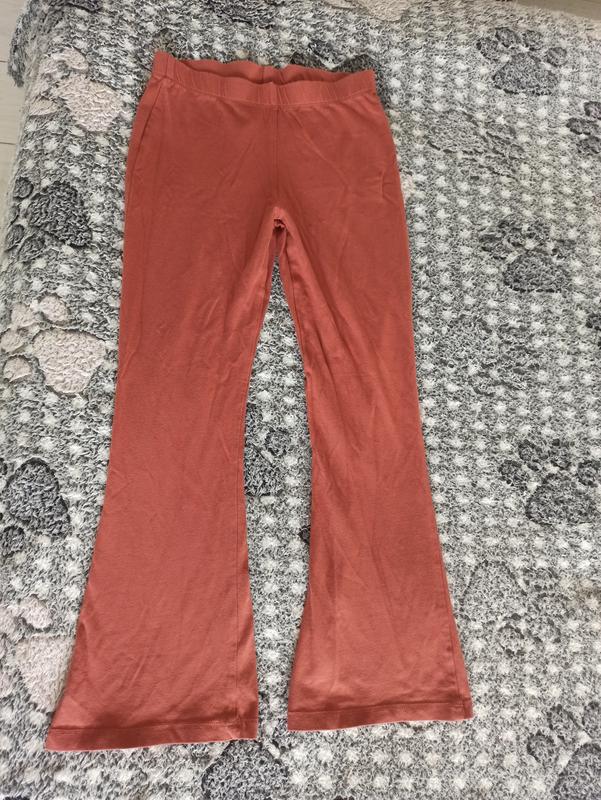 Легкие брюки, приятные на ощупь, длина 74 см, талия 29 и красиво тянется. По наборке 9 лет, но можно и раньше.