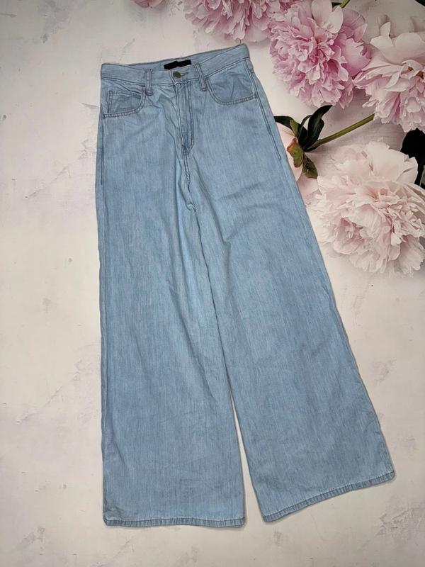 Лёгкие джинсы широкого кроя палаццо Состояние отличнейшее Смотрите замеры. Приблизительно рост 164 Длина 99. Шаг 71. ПОТ 33. ПОБ 50.