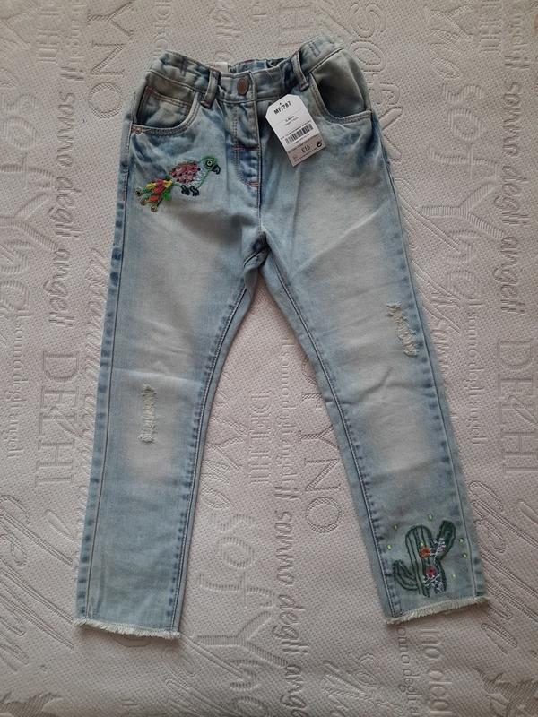 Шикарные летние джинсы Next украшены вышивкой на 5-6 лет (р. 116 см). Склад 100% котон. --Вымеры: дл-67 см, шаг-47 см, посадка-23 см, талия-22 см (сзади на резинке, есть утяжка), ширина в попе-32 см, низ-12 см.