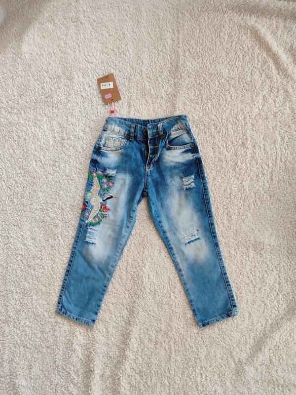 Новые джинсы для девочки р.110 на внутренней части пояса пуговицы для регулировки. Очень красивая вышивка. Если нужно сделать замеры.