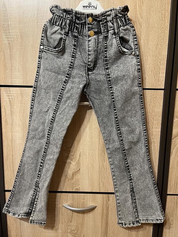 Джинсы для девочки с разрезами в низу Пояс на резинке Длина-71