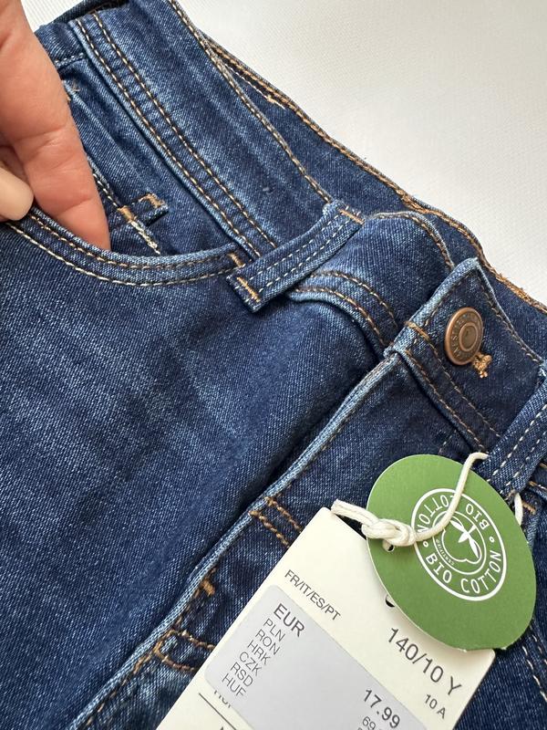 Джинси-скіні на дівчинку C&A. Еластичні та дуже приємні на дотик. Застебаються на гачочок, що додає зручності. На поясі є резиночка, яка регулюється по талії. Розмір в наявності 140 ПОТ 32см Довжина 85см Шаг 63см Склад:,88% коттон, 11% поліестер