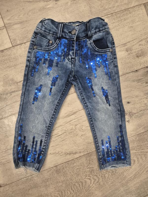 Продам Турецкие джинсы с пайетками Beren Style для девочки (состояние новых) Очень красивые и стильные, модель слегка укрощается, джинс не плотный, на поясе регулируются. Размер 92-98 см (2-3 года) Длина внутреннего шва 32 см Длина бокового шва 47 см