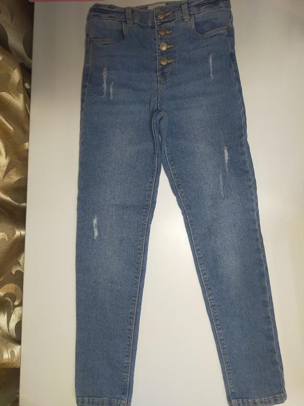 Джинсы голубые на пуговицах, на поясе внутри есть пуговички для регулировки пояса, рост 126_131 носили в 7-8 лет. В идеальном состоянии Длина брюк 76 см Шаговой шаг 57 см Ширина по поясу 28 см