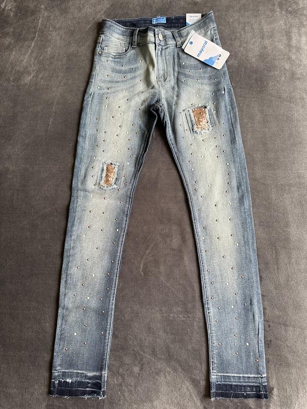Джинси нові, на 152 см. Замеры: Длина - 93 см. Полуобхват пояса - 32 см. Бедра - 39 см. Ширина внизу - 12 см.