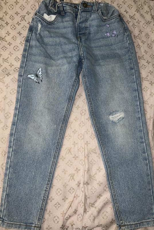 Джинсы в идеальном состоянии,дут на резинки, которая затягивается по талии, чуть одна бабочка стерся, но не бросается в глаза! Классно сидят на ребенке, все замеры предам! Хорошее качество! Размер 128-130