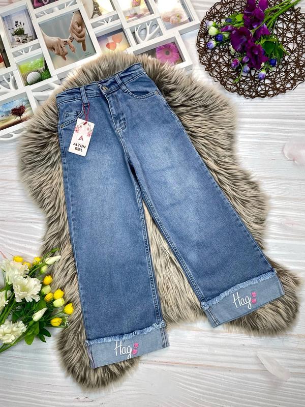 В наличии 💙💛 НОВА ЦІНА 695са Стильные джинсы палаццо для красавиц 💗 Ткань плотный джинс, элегантная тянется, в поясе утяжка производитель Турция Замеры: длина/шак/пояс/бедра 6 (116) - 72/48/27/37 7 (122) - 76/52/28/39 8 (128) - 80/53/29/40. продано 9 (134) - 83/57/30/41 13 (158) - 100/68/34/45 14 (164) - 103/73/35/47 продано 15 (170) - 105/75/36/47 продано