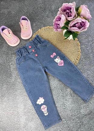 Стильні джинси для дівчинки👍🏻 Пояс на резинці ,на попі є кармани . Дуже круто виглядають на дітках 😍 Гарна якість та практичний дизайн 💥👍🏻 90 - довжина - 52 см,крок- 30 см, бедра 29 см(4 шт) 100 - довжина - 57 см,крок- 35 см, бедра 30 см(4 шт) 110 - довжина - 61 см,крок- 38 см, бедра 32 см(3 шт) 120 - довжина - 66 см,крок- 41 см, бедра 33 см(6 шт)
