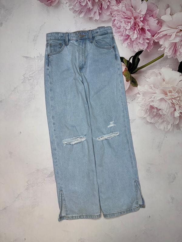 Джинсы широкого кроя палаццо Карманы спереди и сзади Утяжка в талии 🏷️H&M 8-9 лет/134 Длина 84. Шаг 62. ПОТ 29