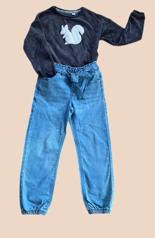 Джинсы для девочек. Пояс на резине: 26 см., растягивается до 36 см.; Длина от пояса: 72 см.; Размеры могут качаться +/- 1 - 2 см.