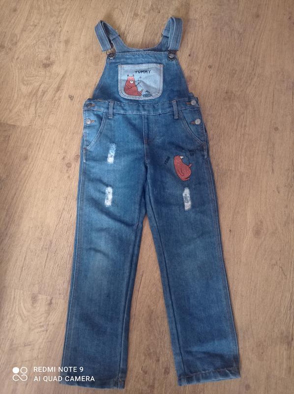 Комбинезон в идеальном состоянии, джинс плотный не тянется, длина шлеека регулируется. Будут вопросы пишите.
