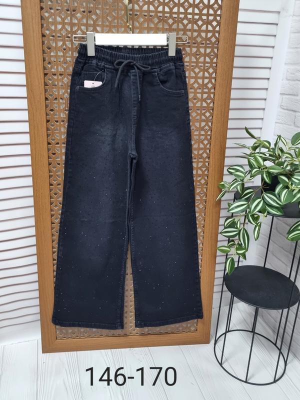 Стильные джинсы палаццо для модниц пояс под резинку украшены камушками есть врезные карманы производитель Турция красиво тянутся цвет темно серый ПОЛНОМЕРНЫЕ УДОБНАЯ КАЧЕСТВО 11 лет (146)-1 шт 12 лет (152)-нет 13 лет (158)-1 шт 14 лет(164)-нет 15 лет (170)-1 шт 🎈11 лет(146)-длина 90,ша 64,пояс 27, поб 43 🎈12 лет(152)-длина 93,шаг 66,пояс 27, поб 44 🎈13 лет(158)-длина 97,шак 69,пояс 28, поб 45 🎈14 лет(164)-длина 100,крок 71,пояс 29, поб 46 🎈15 лет(170)-длина 106, крок 76,пояс 30, поб 47 +-2 см